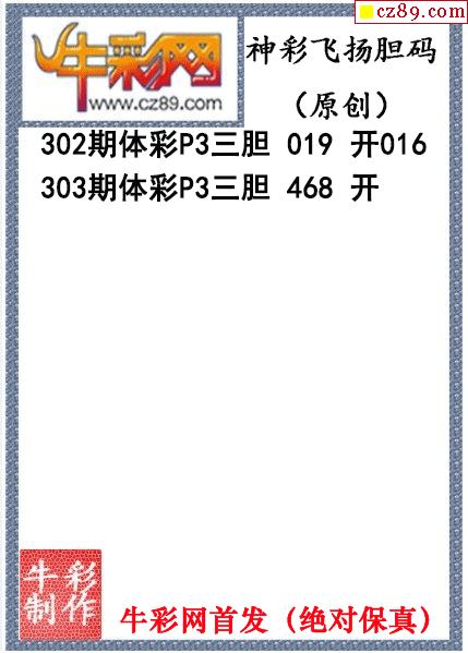 神彩飞扬三胆303期体彩P3图谜(原创)